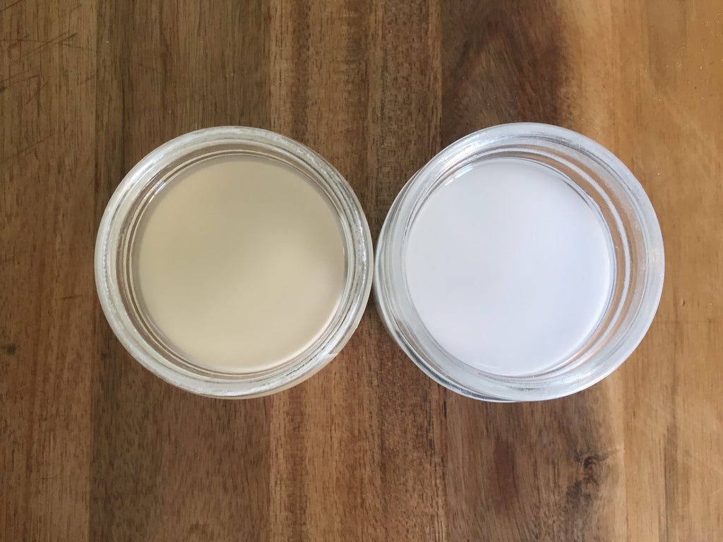 Let’s proceed with some basic kitchen chemistry to test our hypothesis! Science FTW! We take two tubes of commercially available liquid chalk, one with colophony (white label product from China) and one without (Magic Chalk by CHALK REBELS).