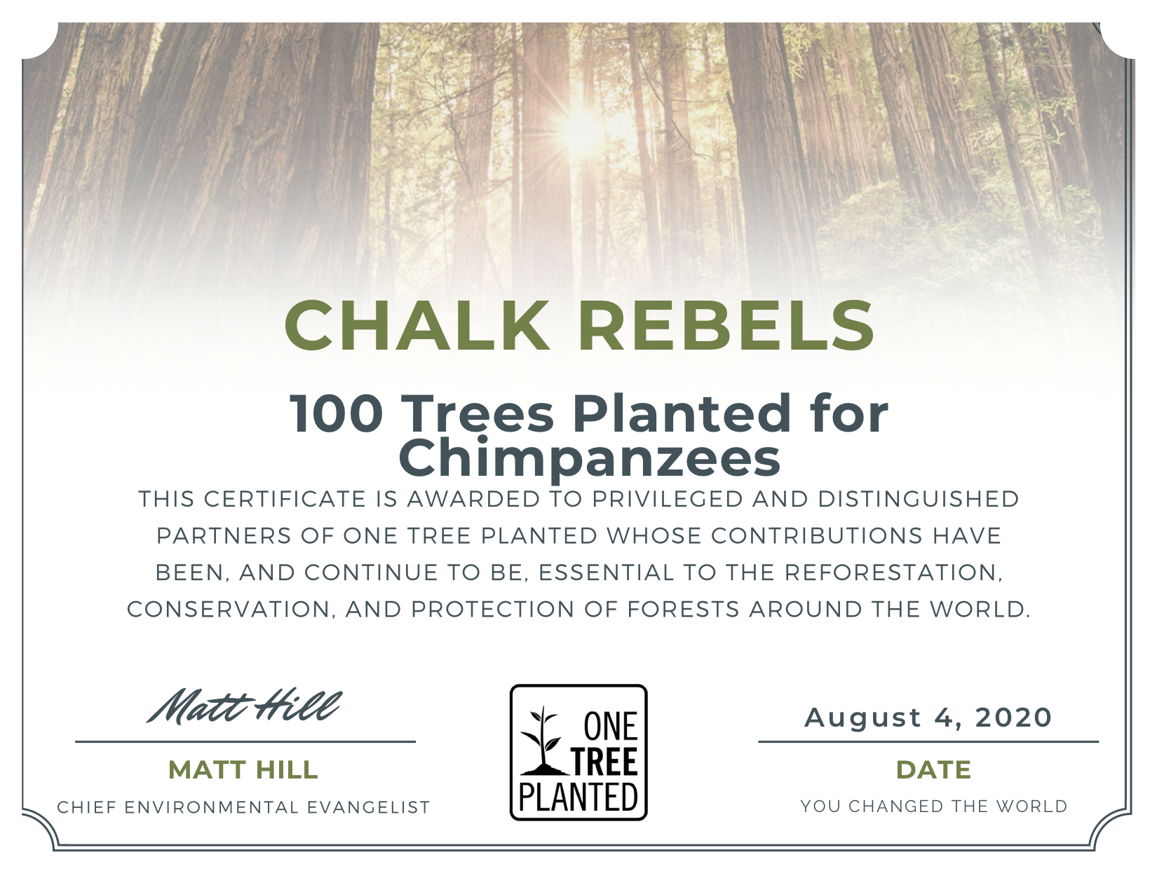All trees are planted & certified by One Tree Planted. We list all certificates below. A grand total of 3450 trees have been planted & certified.